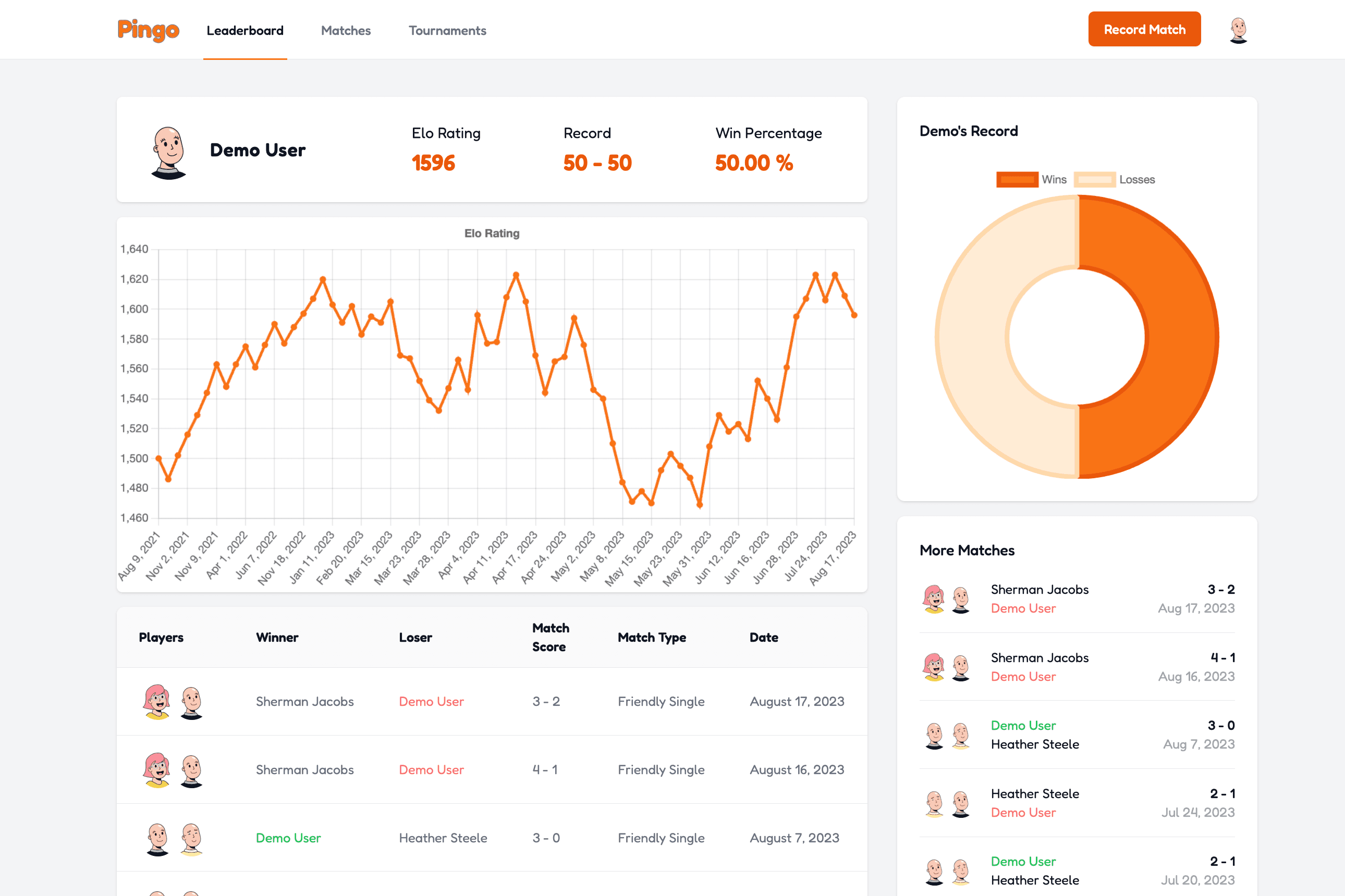 Created, designed, and developed a real-time ping pong leaderboard app to track employee matches, tournaments, and elo ratings.